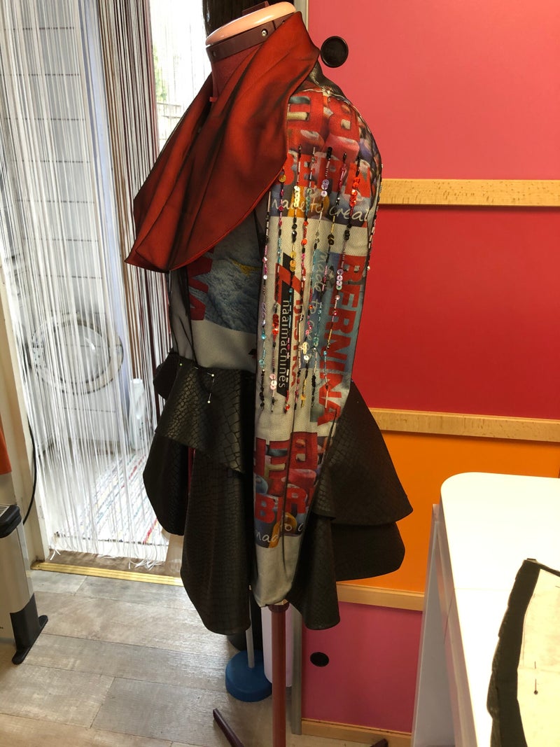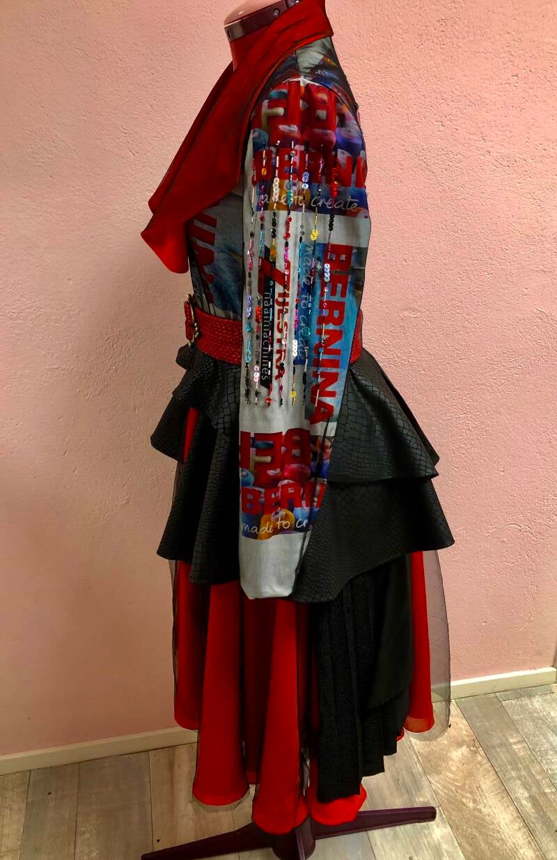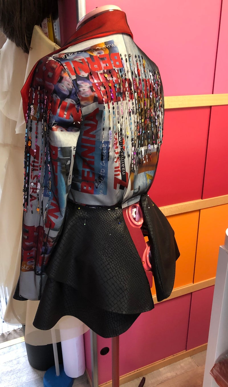 Zijlstra naaimachines Groningen schreef in oktober 2019 een wedstrijd uit. De wedstrijd bestond uit een kledingstuk maken van stof die Zijlstra had laten drukken. Op de veelkleurige stof stond het logo van de winkel en die van Bernina, de hoofdprijs bestond uit een naaimachine van Bernina. De opzet was simpel, maak een kledingstuk van de stof, alles is toegestaan. Als beginnende ondernemer kon ik wel wat naamsbekendheid gebruiken dus ik ging de uitdaging aan.