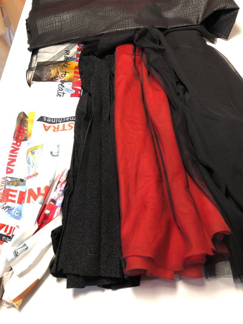 Ik had nog zwarte dunne mousseline en in de uitverkoop kocht ik een zwart met iets zilveren glitter plooirok.