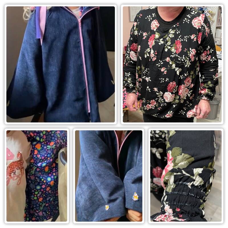 Meerdere kledingstukken gemaakt door Christina (blouse) en Anneke (kinderjas en jumpsuit)