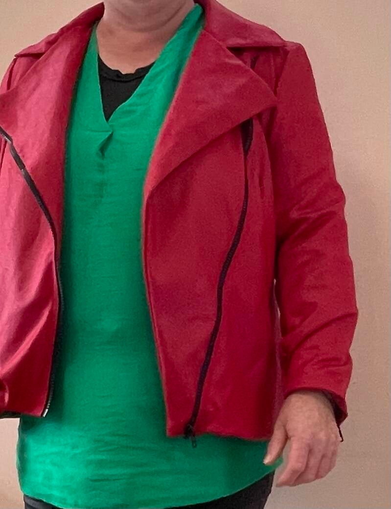 Christina heeft deze motorjack gemaakt, de voering kun je niet zien maar die past er heel mooi bij.